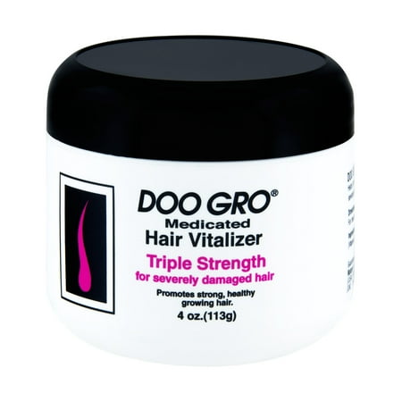 Enriched with shea butter, vitamin and botanical thickener formula promotes thick, strong, growing hair For best results, use with doo gro® mega thick shampoo and conditioner. Promotes thick, strong, growing hair. Helps repair weak and damaged hair while it moisturizes and detangles. Doo gro medicated hair vitalizer triple strength for severely damaged hair 4 oz (113 g).
